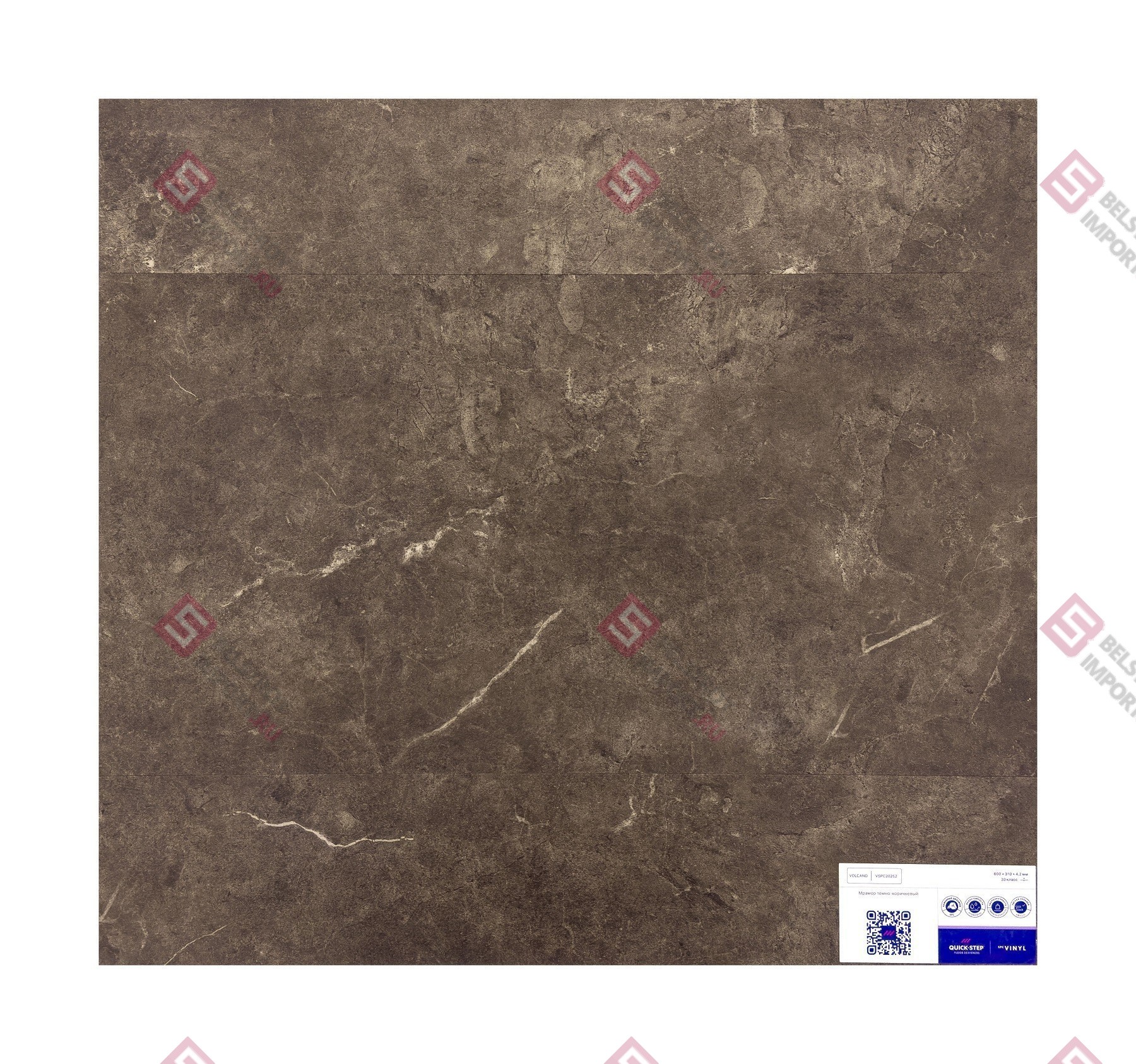 SPC ламинат Quick-Step Volcano Мрамор темно-коричневый VSPC20252 – популярный декор ПВХ-плитки от надежного производителя. Среди главных особенностей необходимо выделить: 33 класс применения, страну производства Бельгия, замковый тип монтажа, минеральную основу (SPC). SPC ламинат Quick-Step Volcano Мрамор темно-коричневый VSPC20252 подходит как для коммерческих, так и жилых помещений. Данный декор кварцвинила LVT не боится влаги, поэтому его можно использовать в ванной или на кухне.